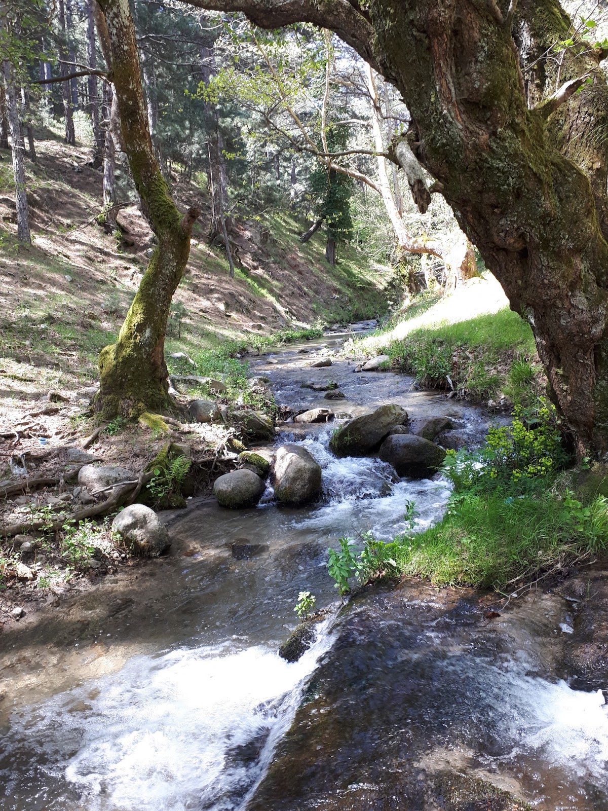 Zaman akıyor, yolları arşınlamak gerek. Yürüdük, yürüdük....Yol boyunca irili ufaklı bir çok çağlayan ve şelale gördük. Ağlayan kayalardan su içtik. 1020 rakımlara kadar patikaları tırmandık, dereler geçtik, kimi zaman kaya-taşlık kimi zaman toprak yollardan yürüdük ve güzel mi güzel, şırıl şırıl akan bir derenin karşı kenarına geçip yanıbaşında mola verdik. Saatler 13;40'ı gösteriyordu. Acıkmıştık. Hemen kuru odunlar toplandı, ateş yakıldı, peynir sündürüldü, sucuklu yumurtalar pişirildi, çaylar demlendi, yenildi, içildi sohbet edildi ve saat 14;53'te tekrar yola revan olundu.