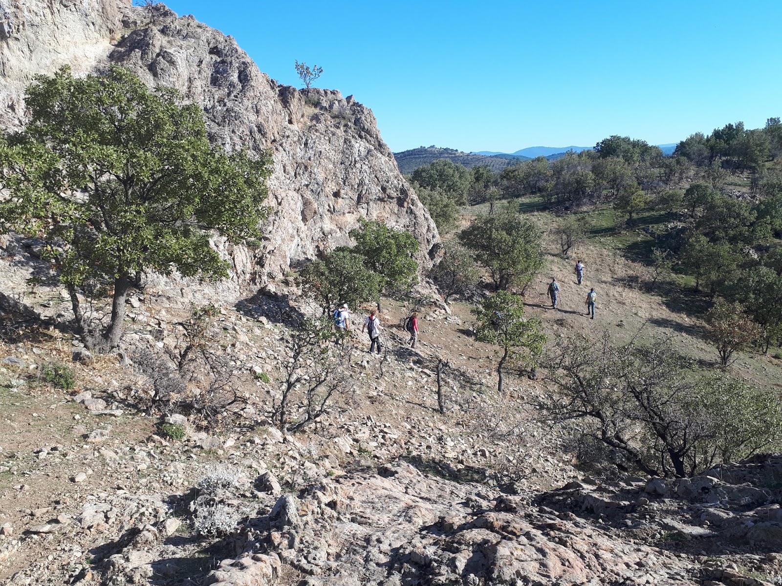 Bugün fazla yürümeyeceğiz ama çok zorlu olmasada bir tırmanışımız olacak. Tam dokuz kişiyiz. Sohbet o kadar koyuki bir ara sapacağımız yolu geçtiğimizi fark edip geri dönmek zorunda kalıyoruz. Ama merak etmeyin fazla bir mesafe değil...